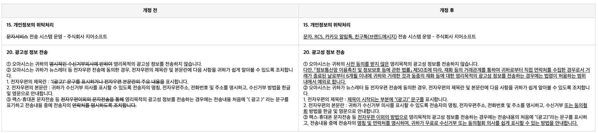 아래와 같이 「개인정보처리방침」이 개정될 예정임을 사전에 안내드립니다.