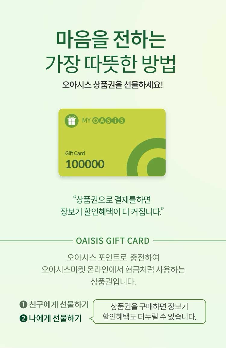 마음을 전하는 가장 따뜻한 방법. 오아시스 상품권을 선물하세요.