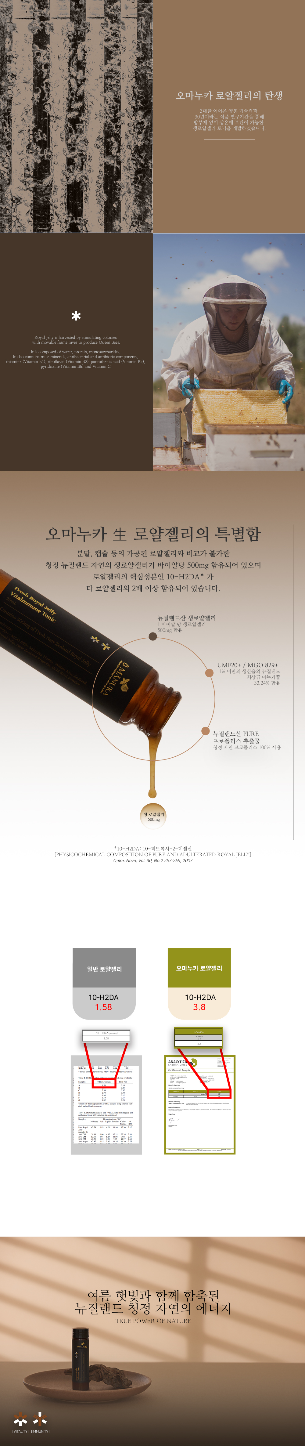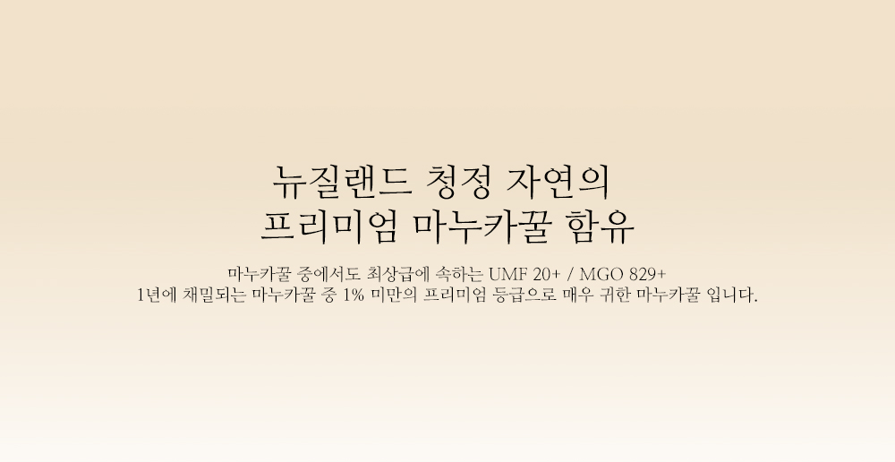 최상급 뉴질랜드산 생 로얄젤리 3500mg 와 UMF 20+ / MGO 829+ 마누카꿀, 뉴질랜드산 프로폴리스가 최적 비율로 배합되어 몸에 활력과 면역력을 선사합니다. 남녀노소 호불호 없는 맛으로 맛과 영양을 모두 잡은 뉴질랜드 최고의 건강 토닉 패키지입니다.