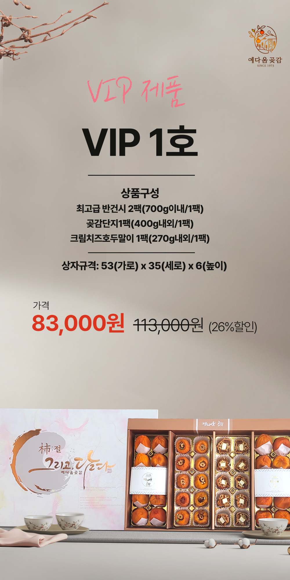 • [예다움곶감] 상주곶감 VIP 1호(특대반건시+곶감단지+크림치즈호두말이) 명절 가정의달 선물세트