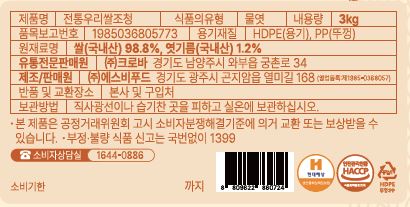 1) 100% 국내산 쌀