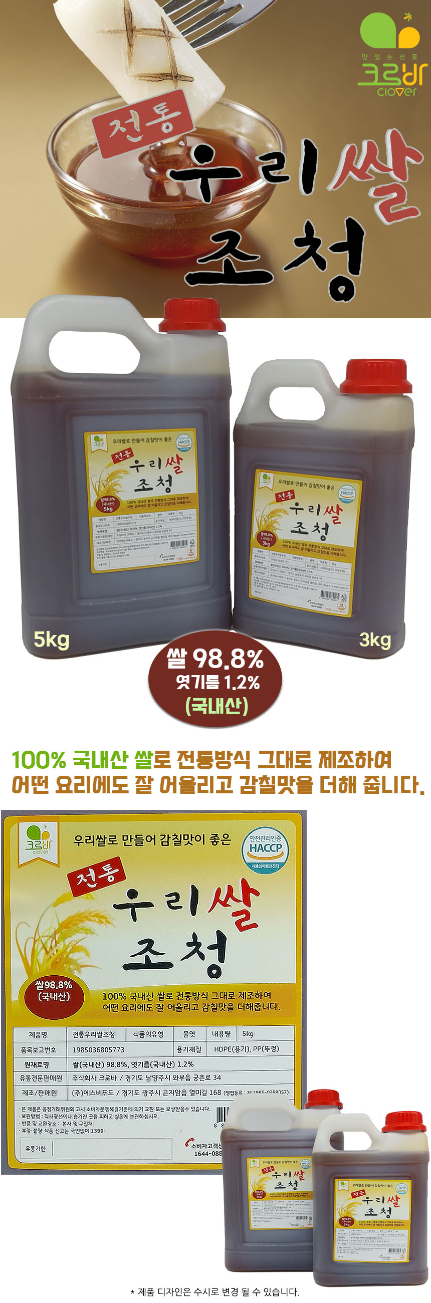 • 크로바 100% 우리쌀  조청