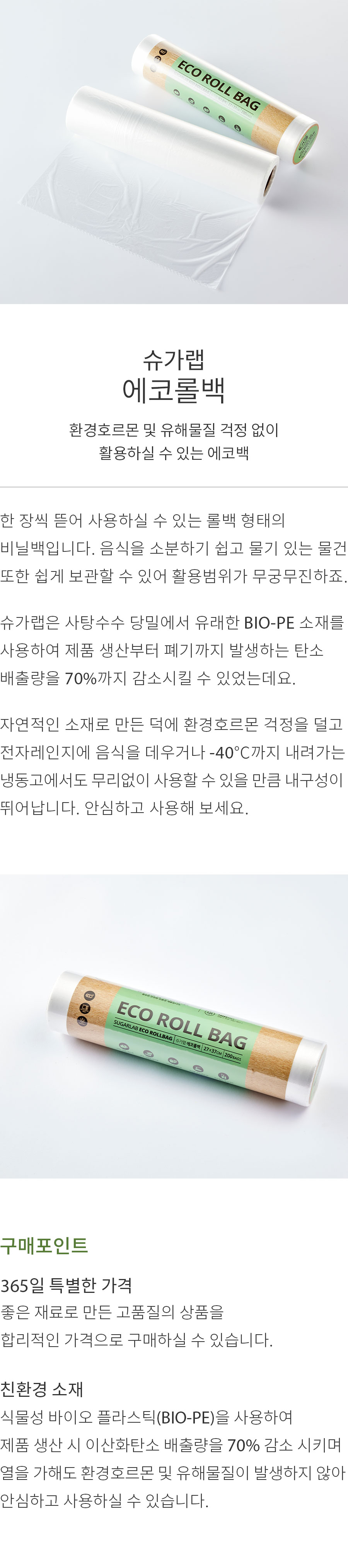 슈가랩 사탕수수 에코롤백 (리뉴얼/30x40cm/200매) 수량빼기 수량추가 7,500 원 총 수량 1 개 7,500 원 구매옵션 닫기 찜하기 추가 찜하기 삭제 구매후기 1,289 상품상세 정기구독 장바구니 정기구독 장바구니 구매하기 정기배송 장바구니