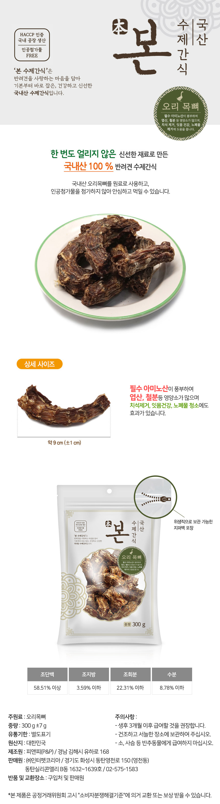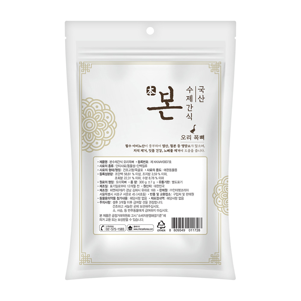 • 본 수제간식 오리목뼈 300g