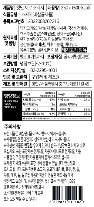 제조 원재료 및 배합비는 동일하며 기재 사항만 변경 됩니다.