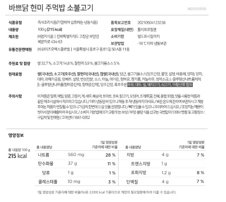 바쁘닭 현미주먹밥 소불고기