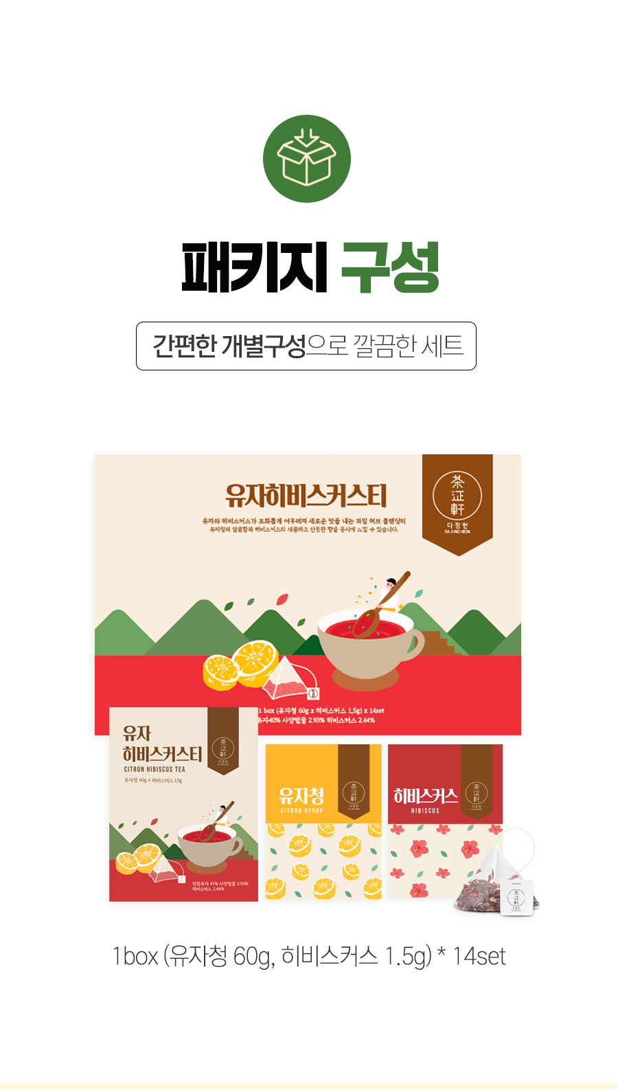 다정헌 수제과일청 블렌딩티 유자히비스커스티 1box(14입)
