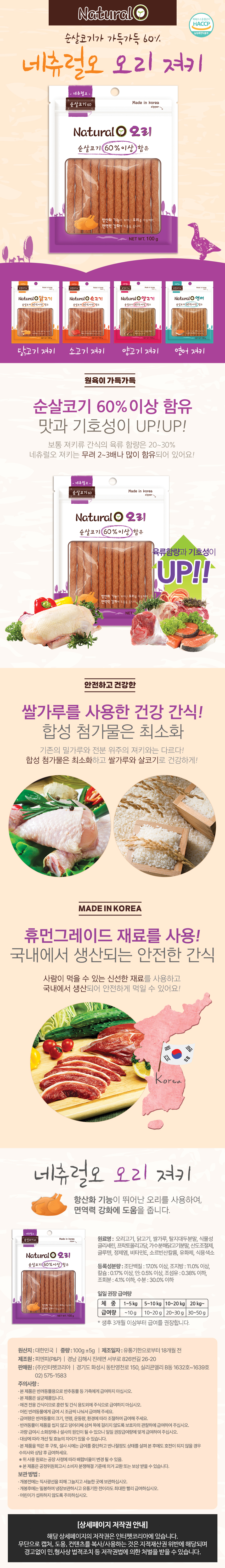 국내산 원료를 사용하여 국내에서 제조된 안전한 간식입니다. 휴먼그레이드 원료를 사용하여 안심하고 급여할 수 있습니다. 순살코기 함량이 60% 이상이어서 맛과 기호성이 매우 좋습니다. 기존 밀가루와 전분 위주로 만들어진 저키류 간식들과 달리 쌀가루를 사용한 건강 간식입니다.