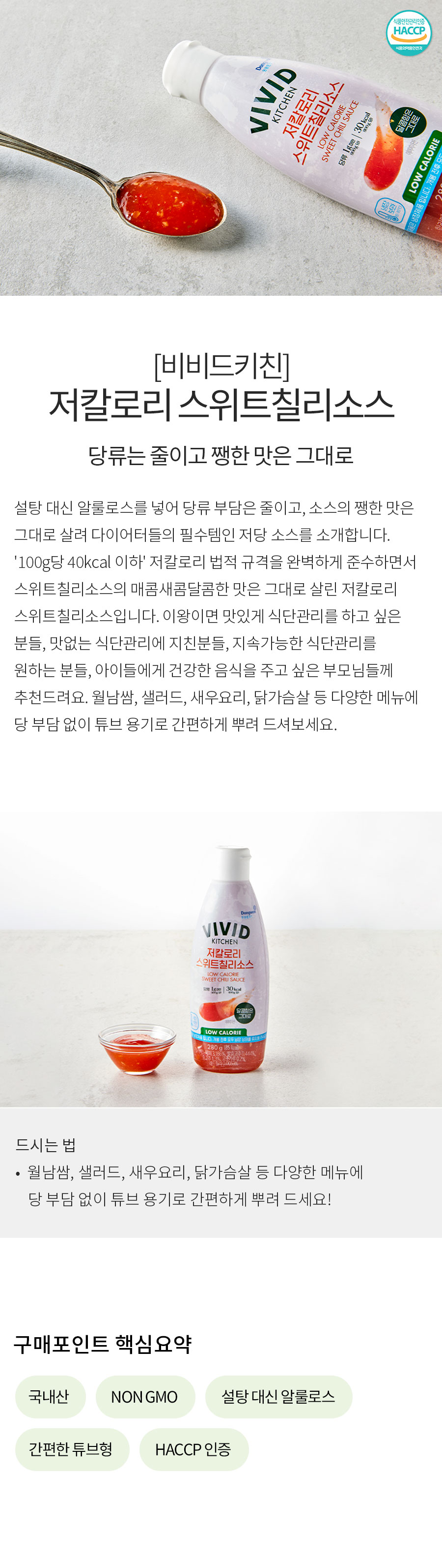 비비드키친 저칼로리 스위트칠리 (280g) 수량빼기 수량추가 3,780 원 총 수량 1 개 3,780 원 구매옵션 닫기 찜하기 추가 찜하기 삭제 구매후기 696 상품상세 정기구독 장바구니 정기구독 장바구니 구매하기 정기배송 장바구니