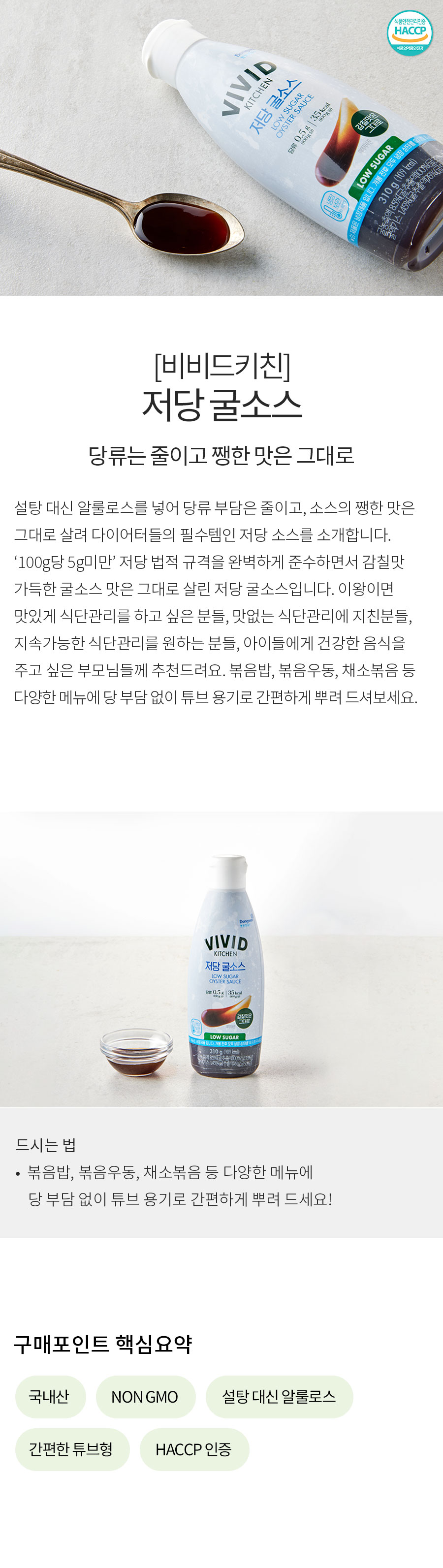 비비드키친 저당 굴소스 (310g) 수량빼기 수량추가 개 4,930 원 총 수량 1 개 4,930 원 구매옵션 닫기 찜하기 추가 찜하기 삭제 구매후기 738 상품상세 정기구독 장바구니 정기구독 장바구니 구매하기 정기배송 장바구니
