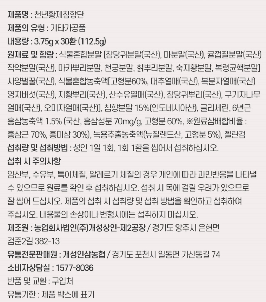 • [농협] 천년황제 침향단 3.75g x 30환