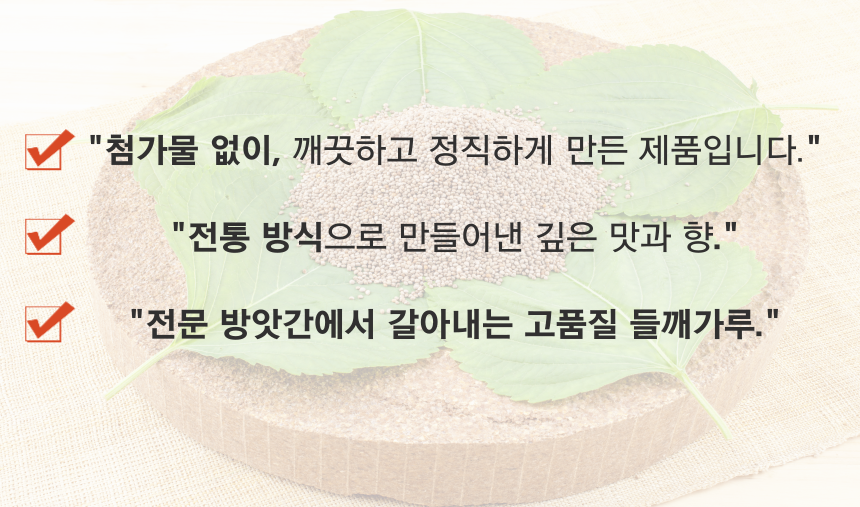 햇 들깨로 신선함을 담습니다!