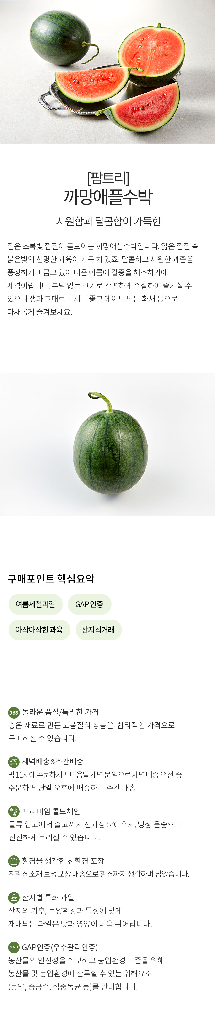 까망애플수박(2kg미만) 수량빼기 수량추가 8,900 원 총 수량 1 개 8,900 원 구매옵션 닫기 찜하기 추가 찜하기 삭제 구매후기 450 상품상세 정기구독 장바구니 정기구독 장바구니 구매하기 정기배송 장바구니