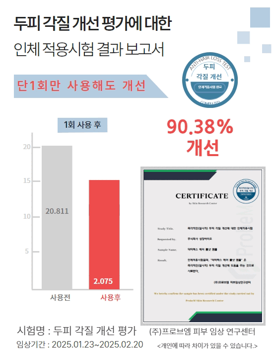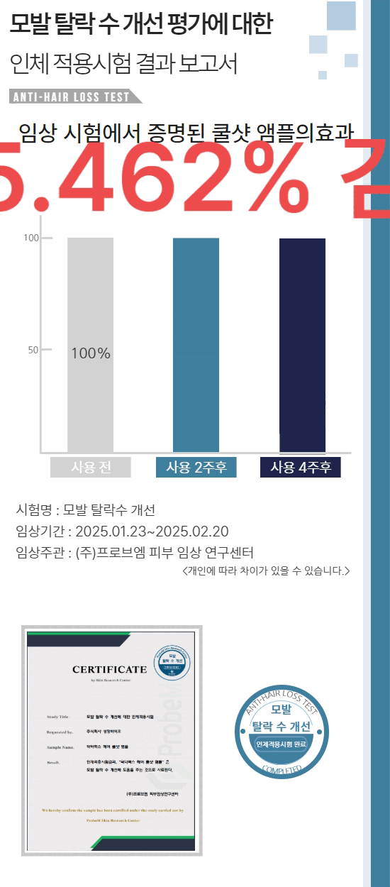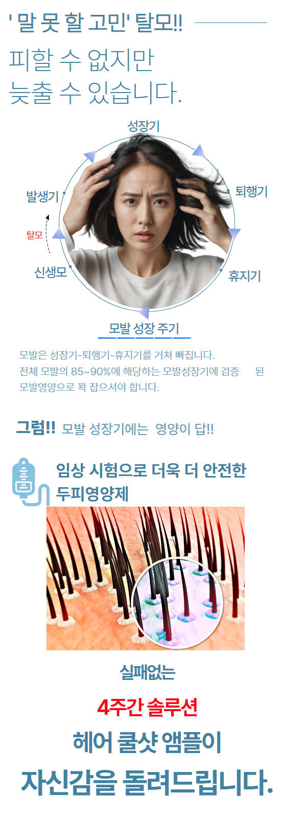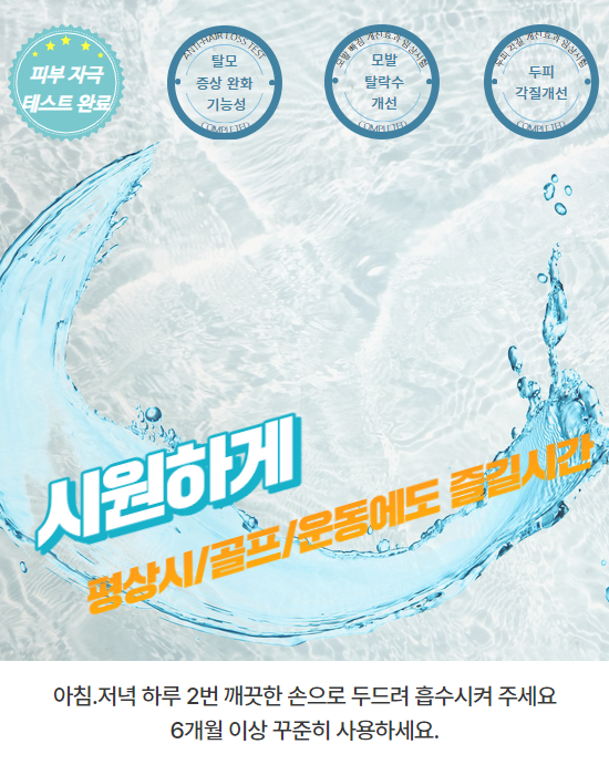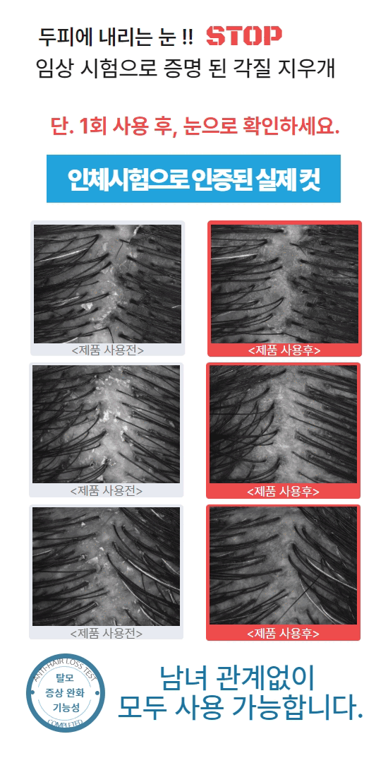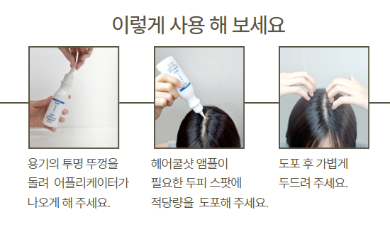 사용방법 : 사용 전 제품을 잘 흔든 후, 하루 2번 아침,저녁으로 두피의 필요한 부분에 골고루 바르고 가볍게 두드려줍니다.