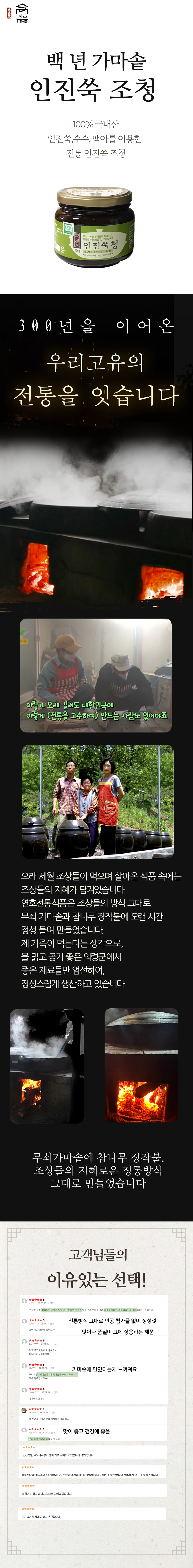 무쇠가마솥에 장작불을 이용하여 조상의 전통방식 그대로 만든 무첨가, 무설탕의 인진쑥청입니다.