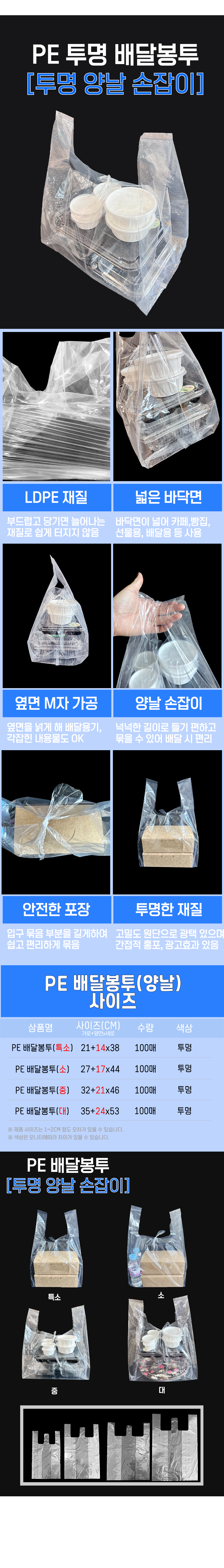 • 비닐봉투(특소/소/중/대)-PE투명 배달 포장 100장