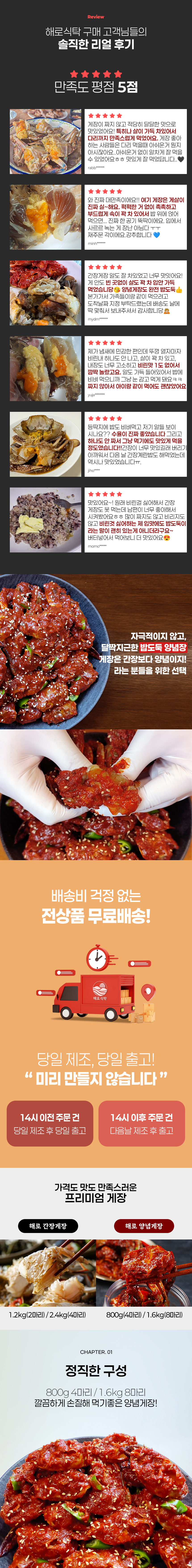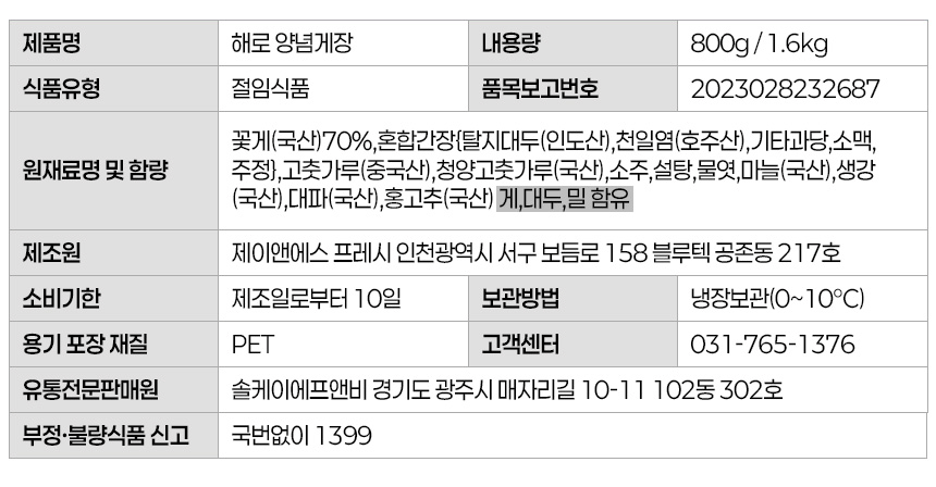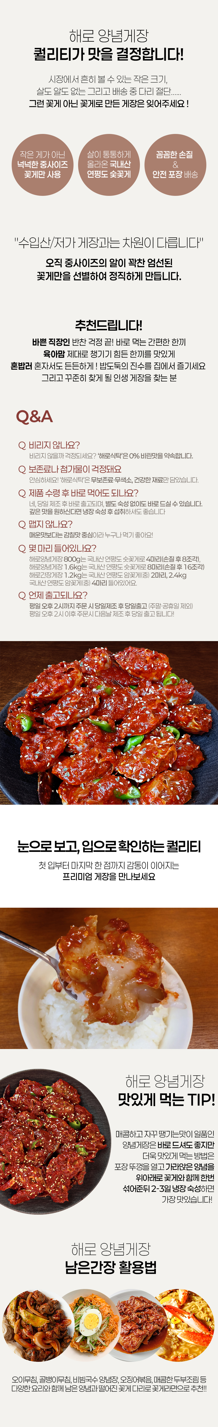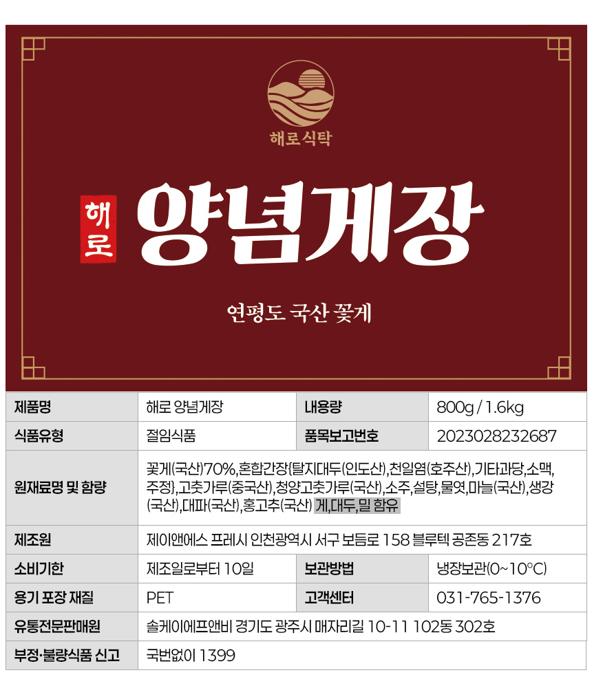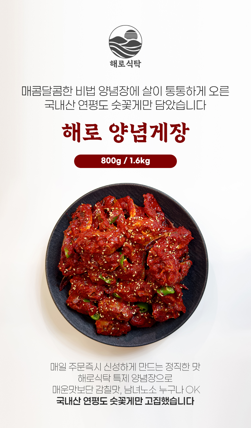 • [해로식탁] 국내산 꽃게 양념게장 연평도 꽃게장 1.6kg, 1개