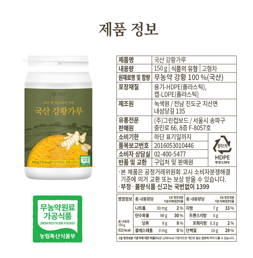 • 올리 무농약 국산 강황가루 150g