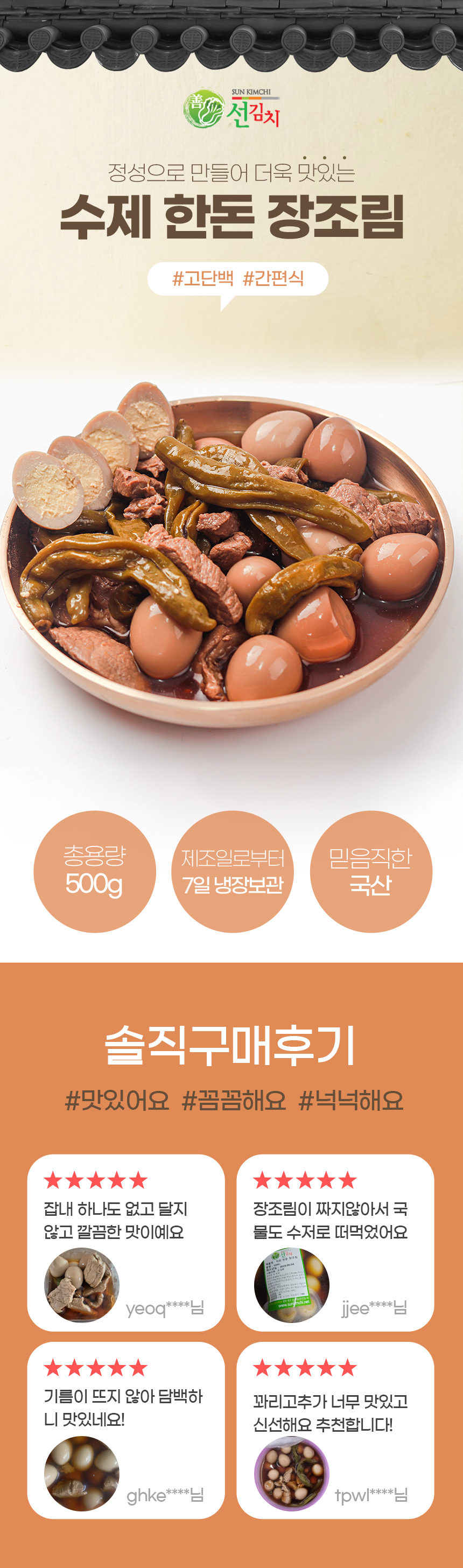 [말바우시장 선김치] 가정식 착한 한돈 장조림 500g