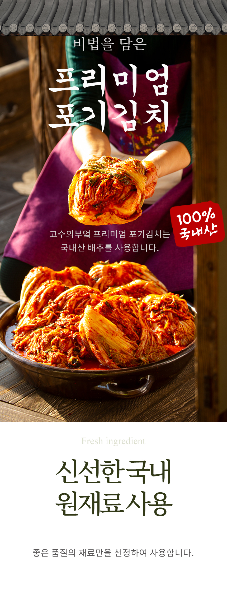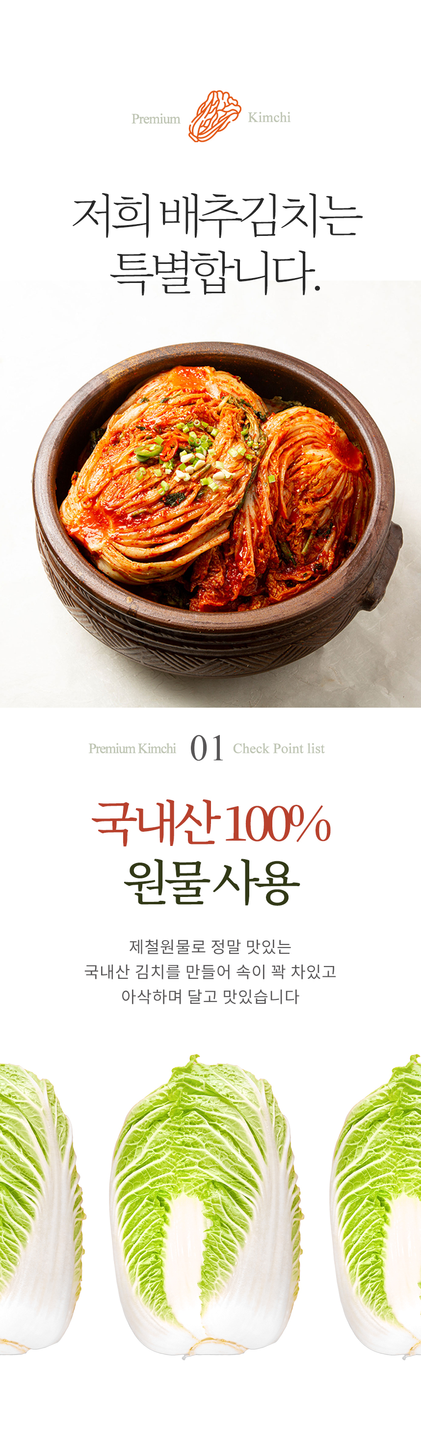 프리미엄 김치 (올국산100%) 포기김치 1kg