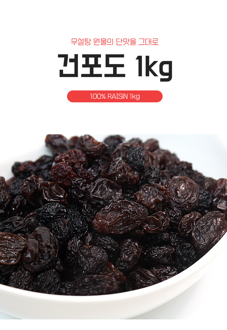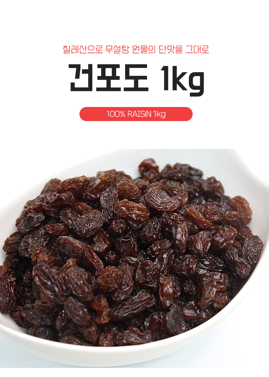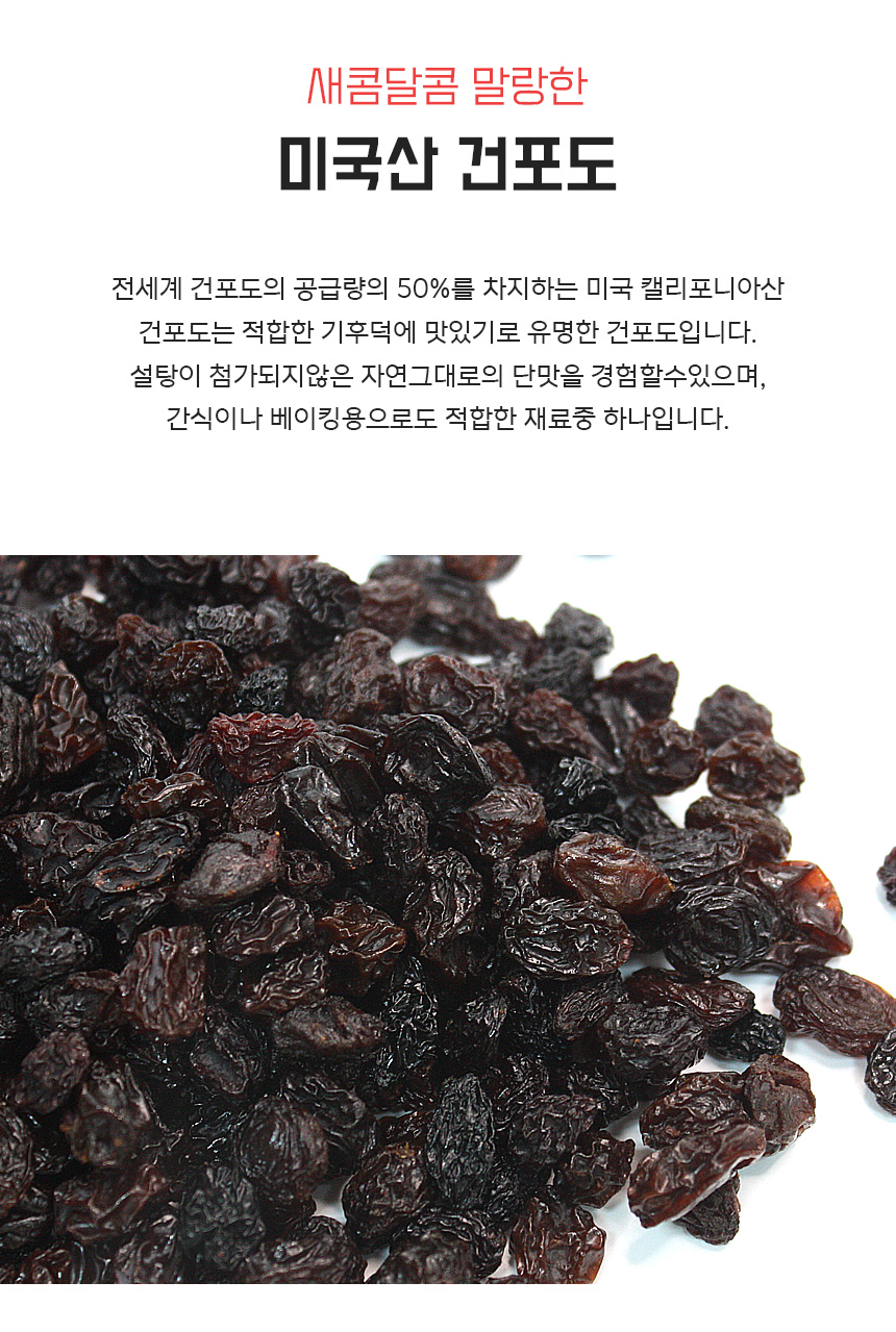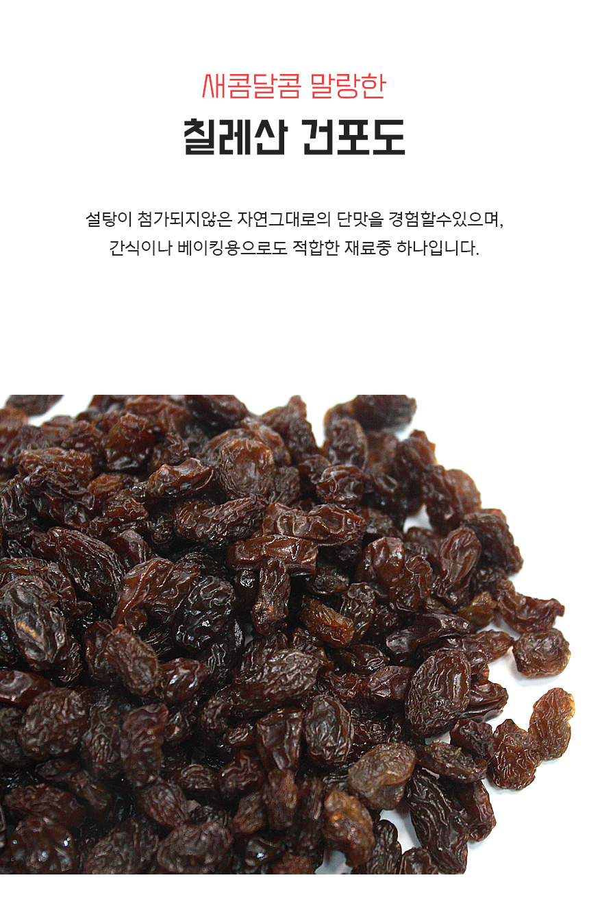 무설탕 건포도 대표적인 건과일로 새콤달콤 쫀득한 식감과 베이커리재료나 다양한 요리에 사용