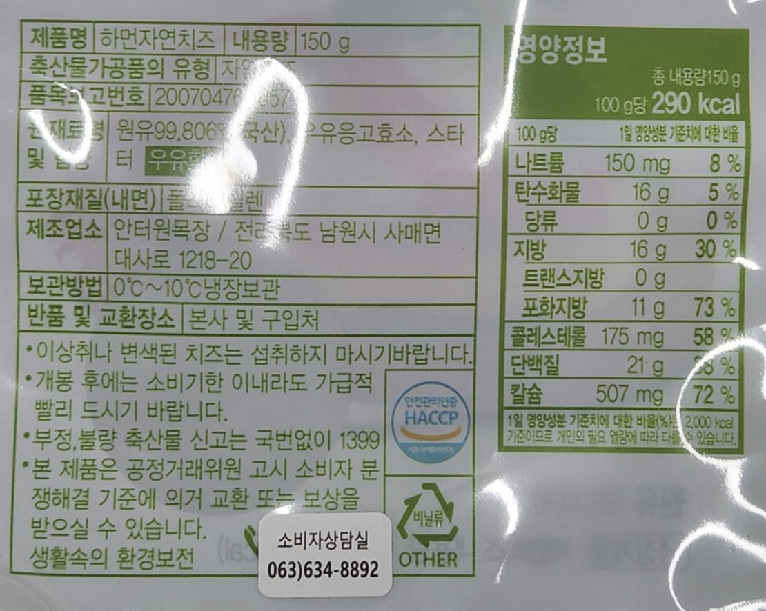 1. 매일 아침 착유한 무항생제 원유로 만든 자연치즈