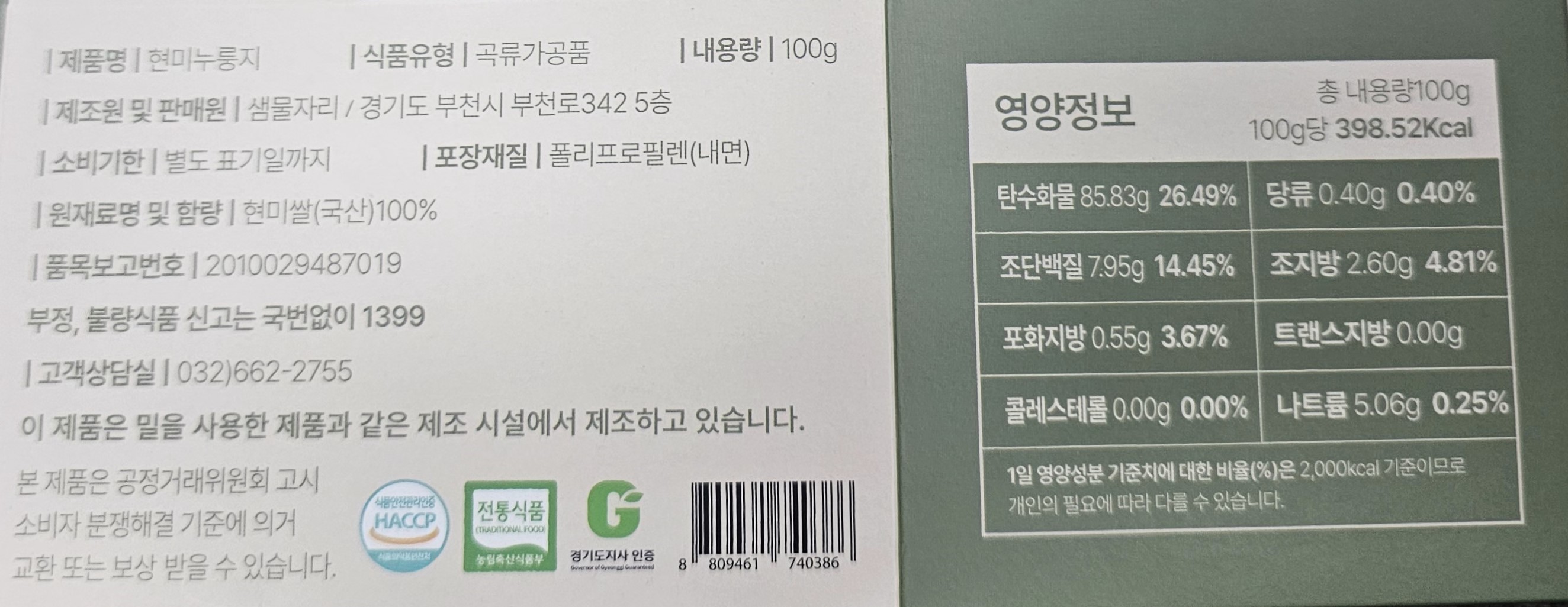 원재료 및 함량
