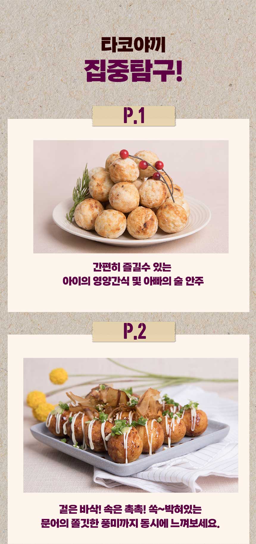 ● 겉은 바삭! 속은 촉촉! 쏙~ 박혀있는 문어의 쫄깃한 풍미까지 동시에 느껴보세요.