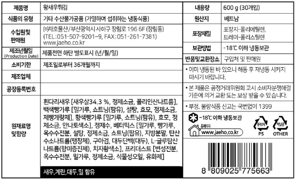 • [재호식품] 왕새우튀김 300g(10개입), 600g(30개입)