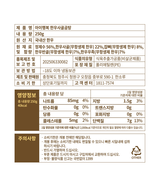 • 아이행복 한우사골곰탕 [250g] + 최고등급 사태 [30g]
