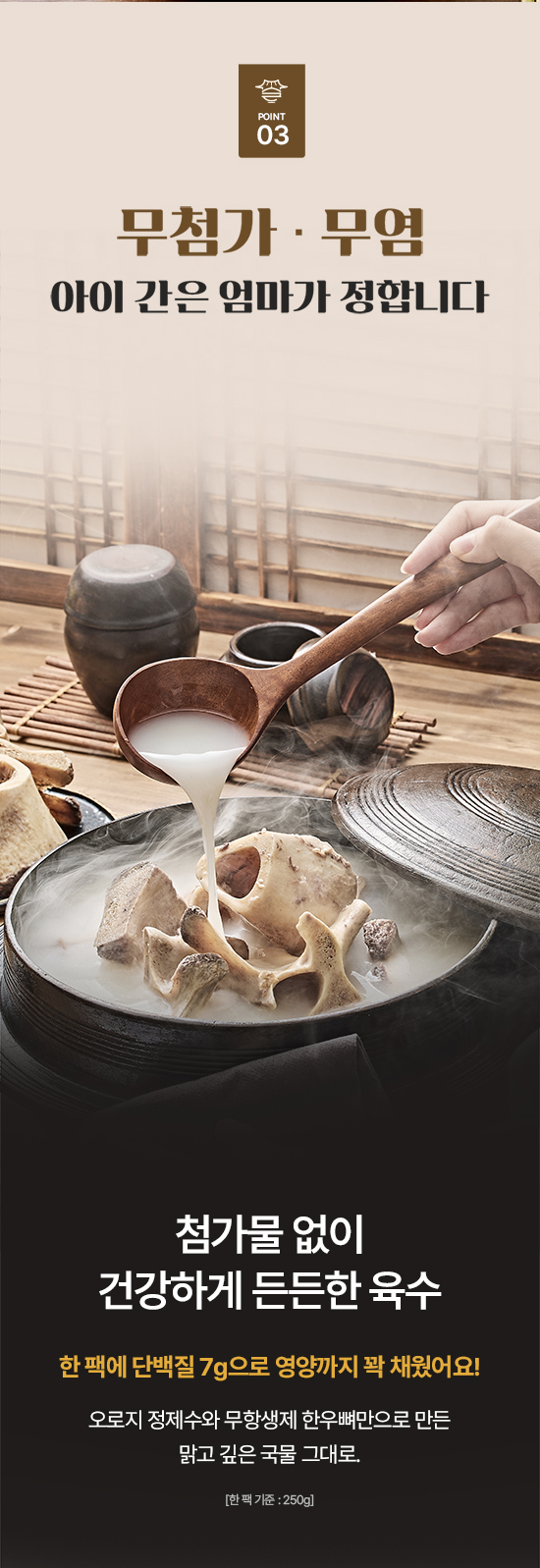 ③ 고기 제외 육수만으로 단백질 7g, 무첨가 무염