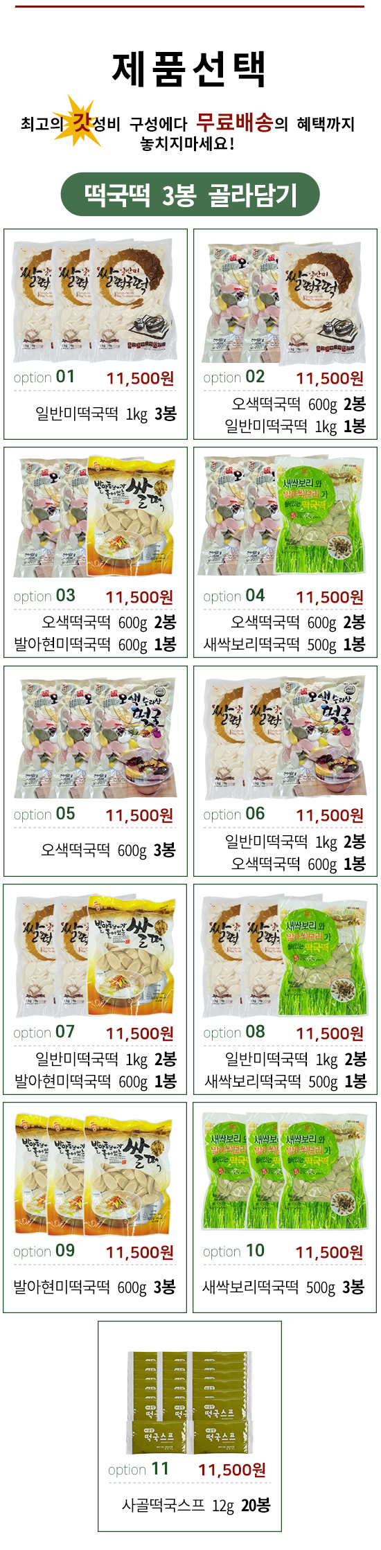 • 03_오색떡국떡 600g x 2봉 + 발아현미떡국떡 600g x 1봉