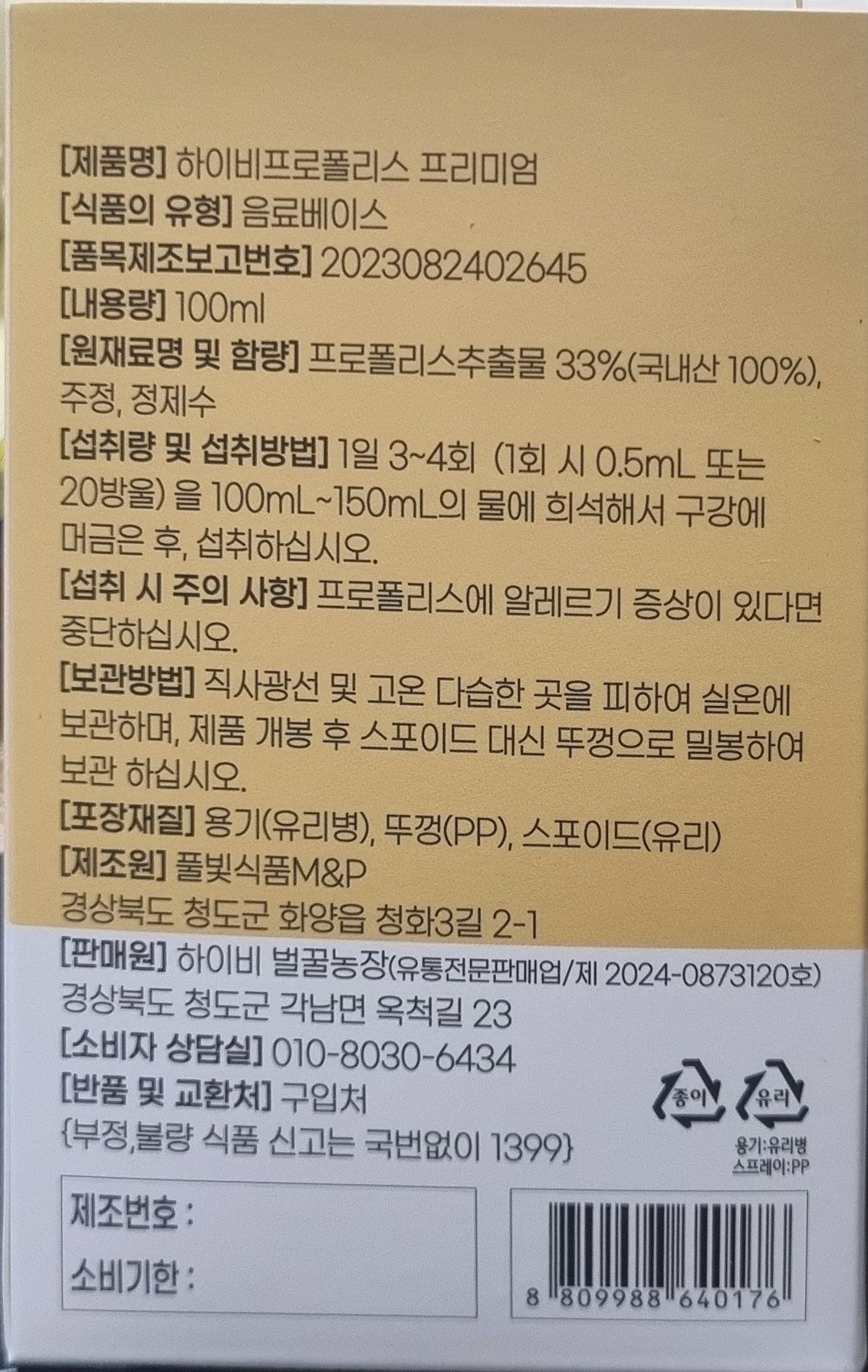 경북 청도 순수 프로폴리스