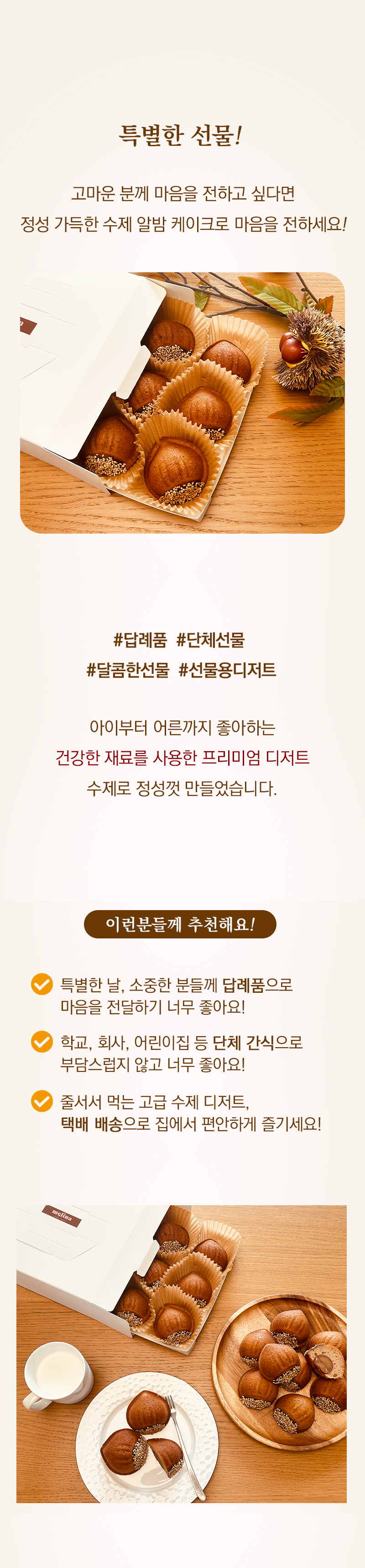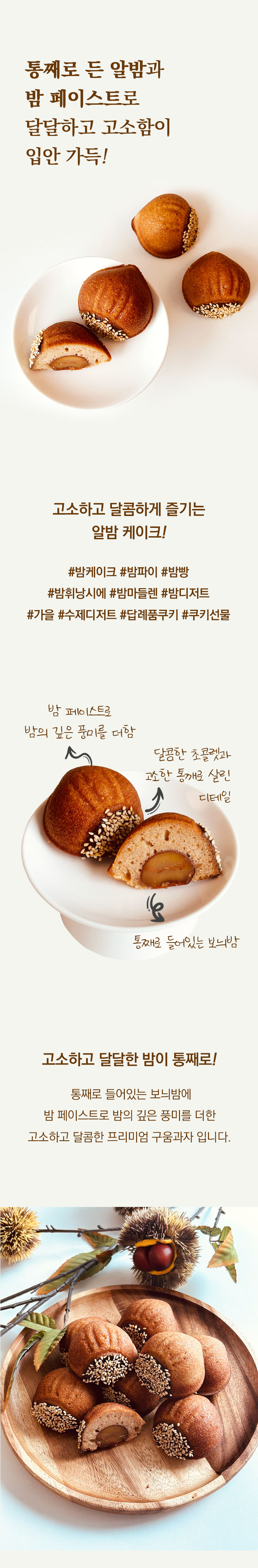 귀여운 밤톨 모양으로 만들어져 보는 즐거움과 먹는 행복을 동시에 전해드려요.