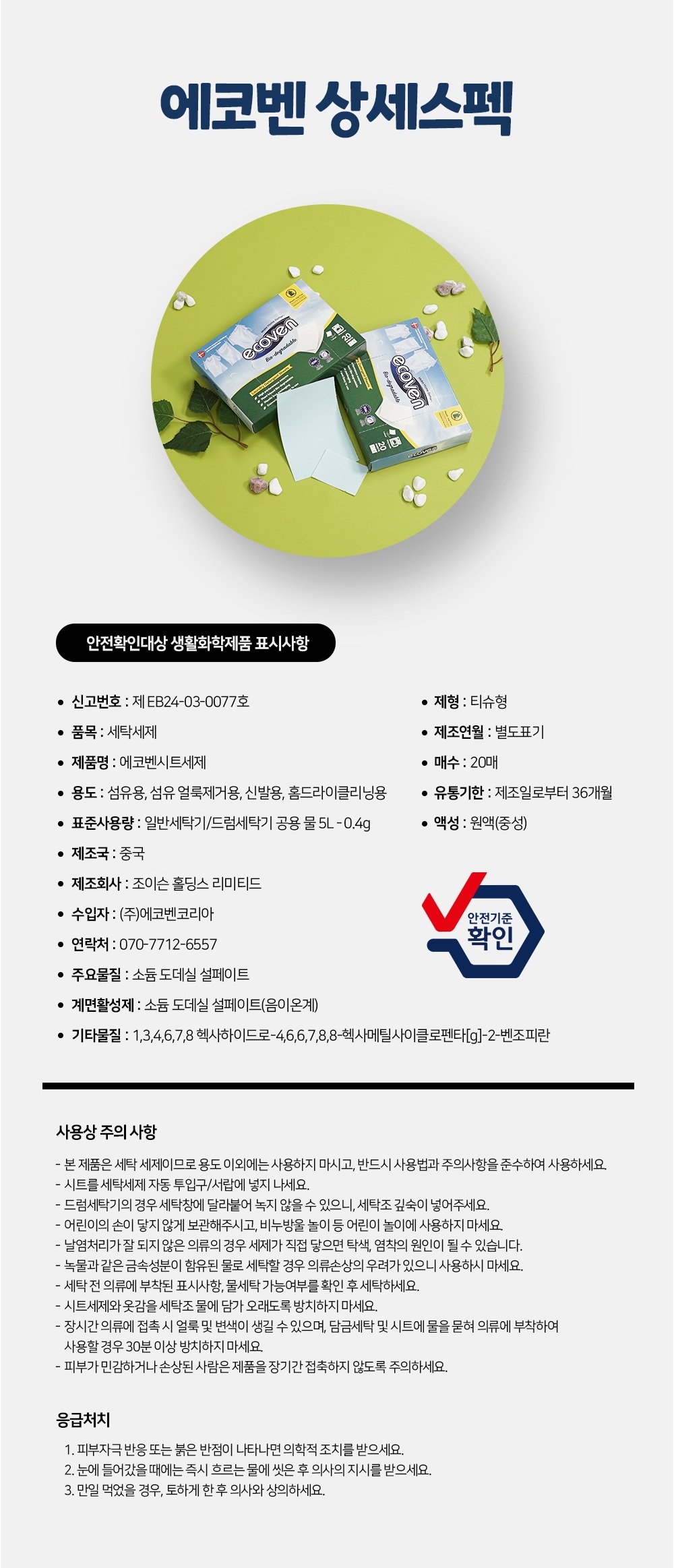 • 에코벤 시트형 세탁세제 6박스(총120매)