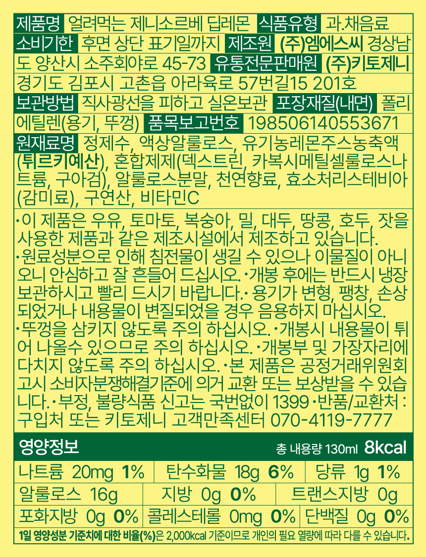 유기농 레몬즙으로 만든 얼려먹는 제니소르베 딥레몬 10개입