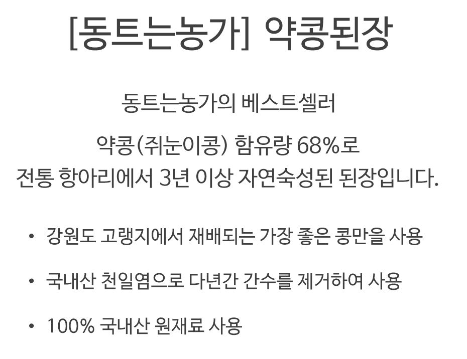 100% 국내산 약콩(쥐눈이콩)으로 만든 자연발효 재래식 전통 된장