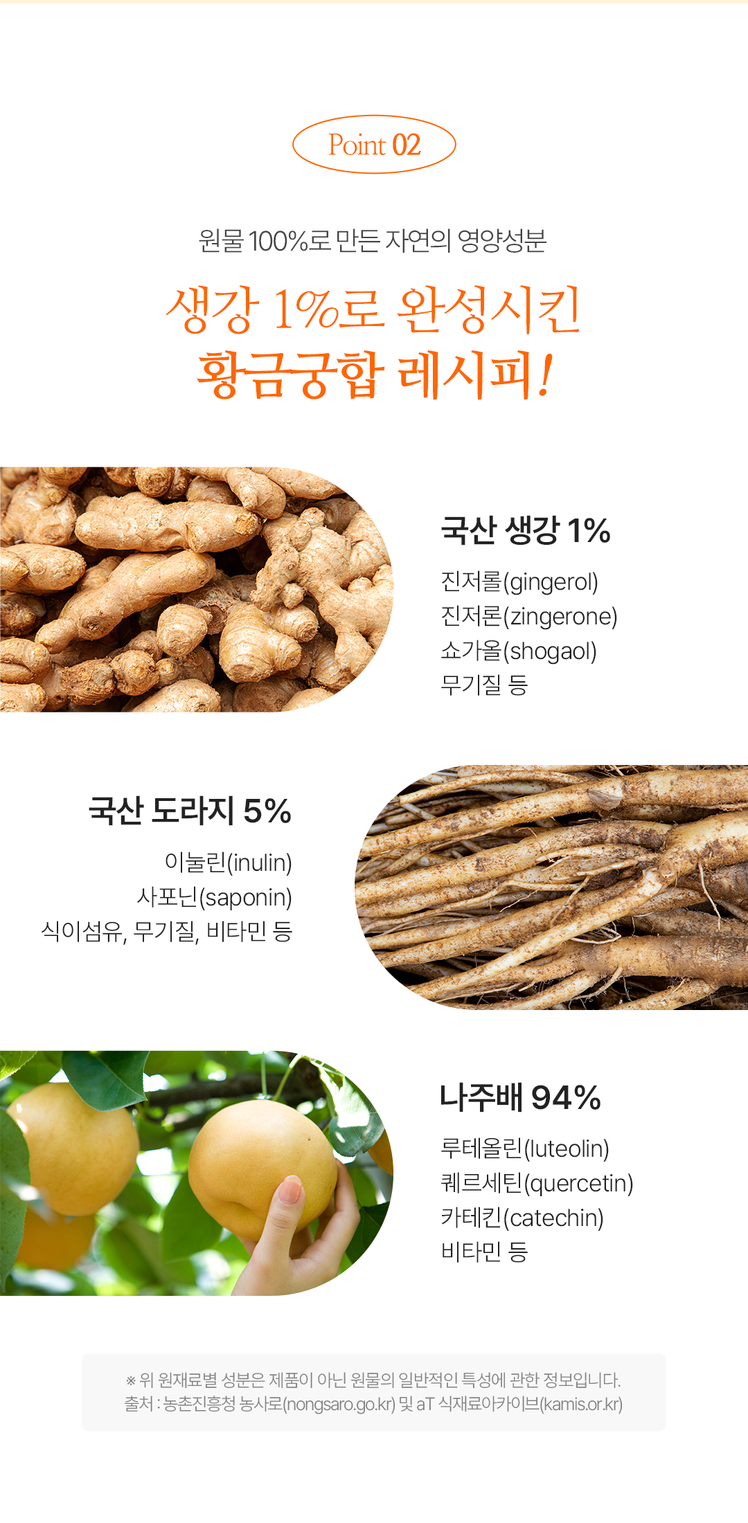 나주배(국산), 도라지(국산), 생강(국산)