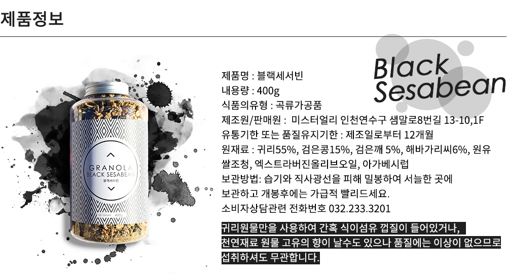 • 진한고소함 흑임자서리태 무설탕 저당 오트밀 그래놀라200g