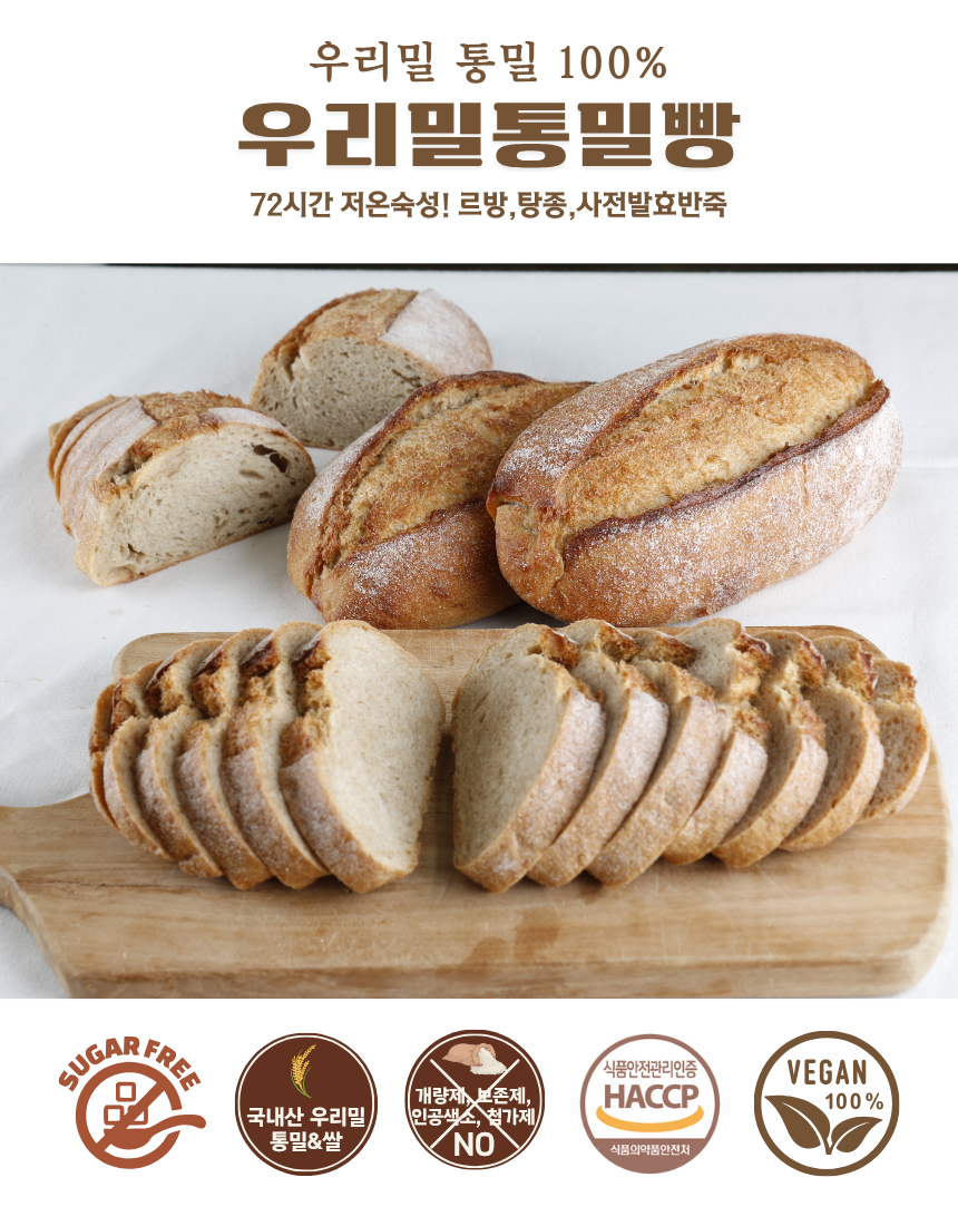 우리밀 통밀 100%, 72시간 저온숙성! 르방, 탕종, 사전발효반죽