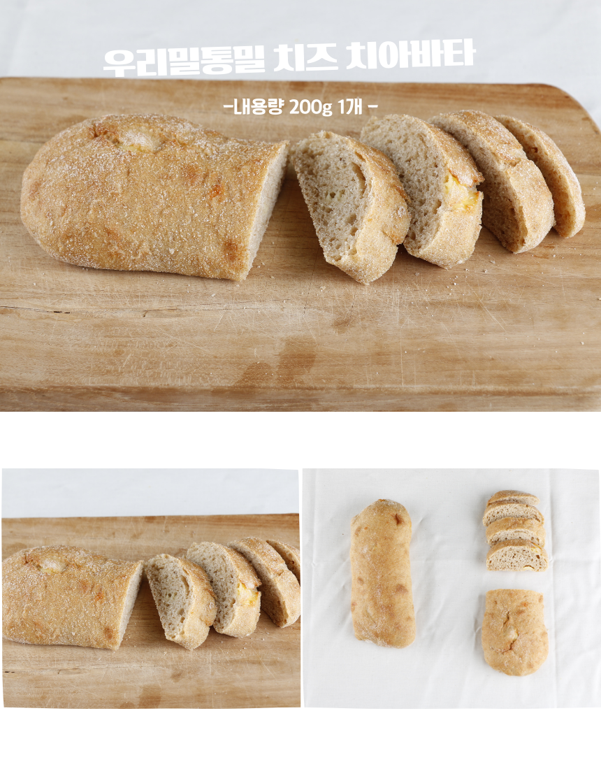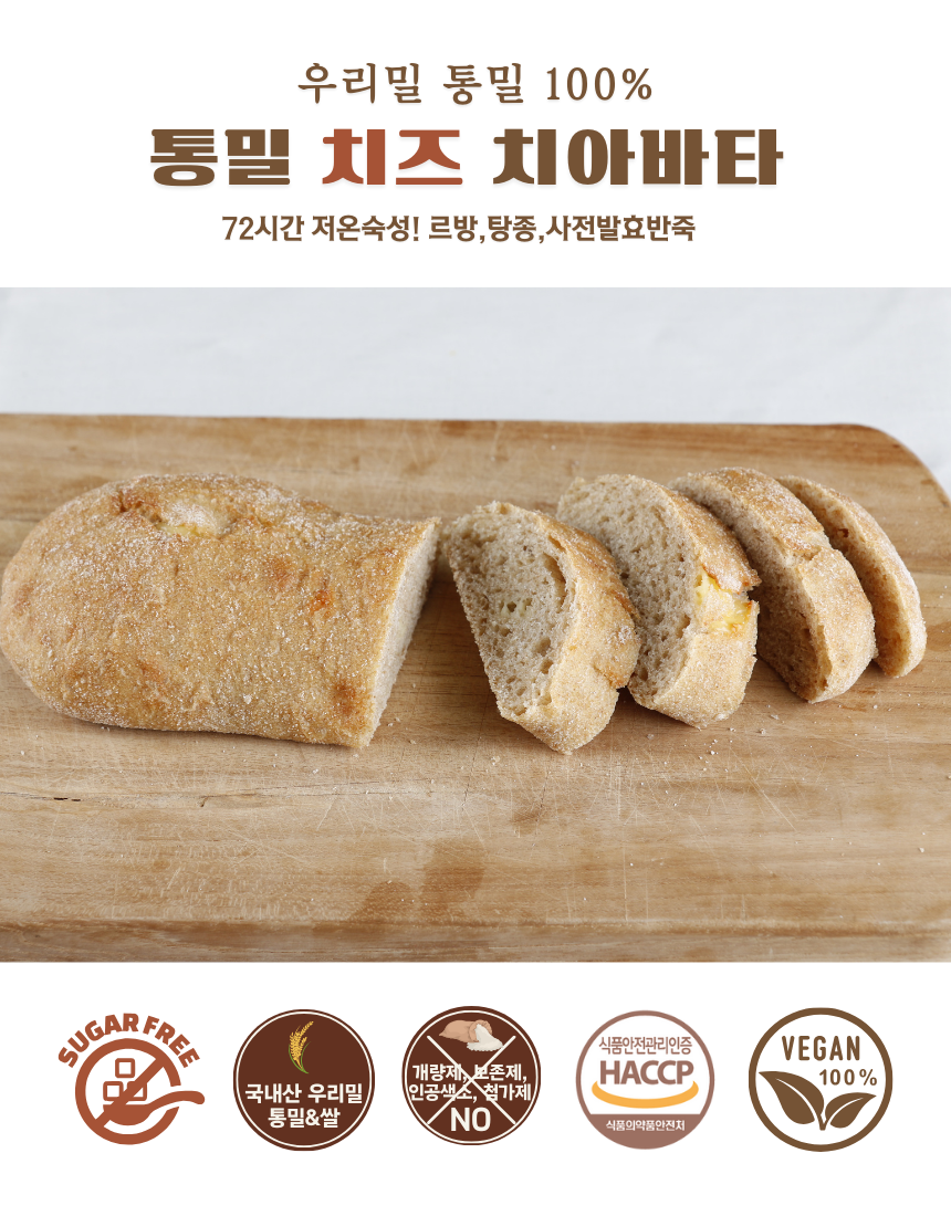 통밀 치즈 치아바타 우리밀 천연발효 비건 건강 샌드위치 빵 200g