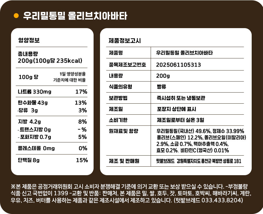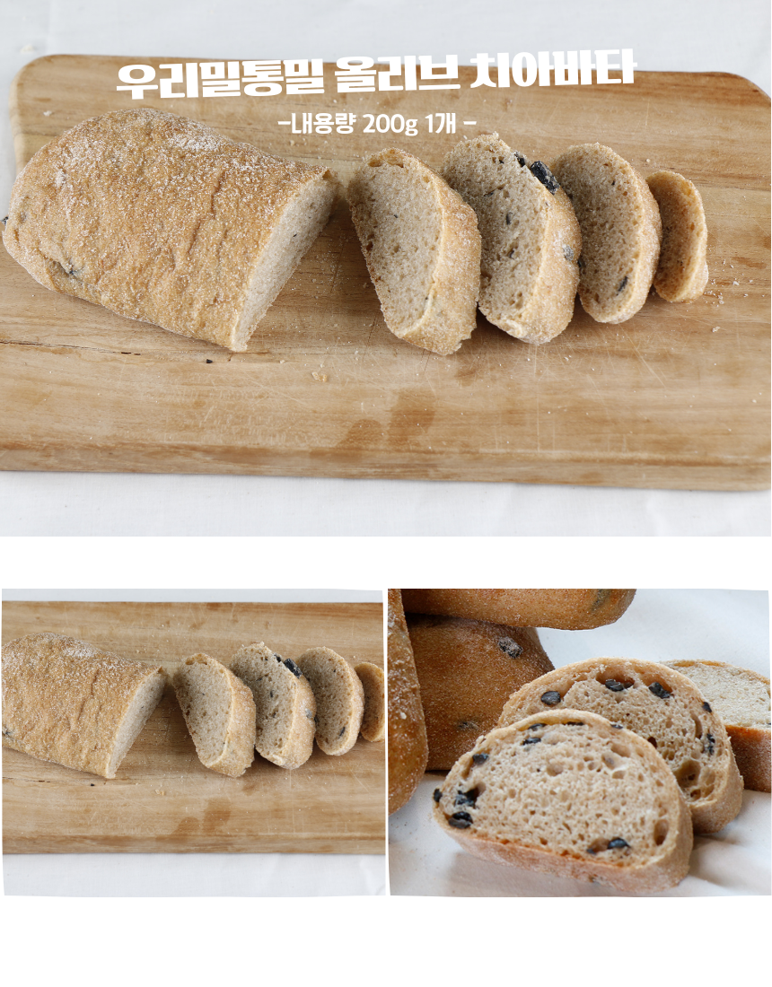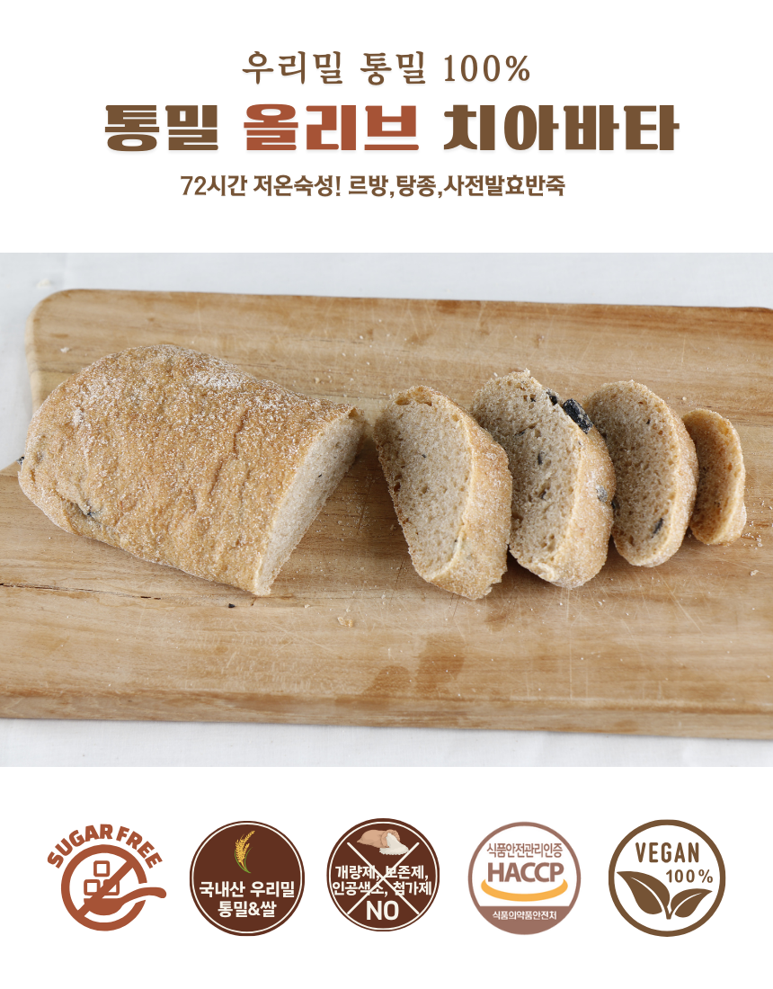 • 통밀 올리브 치아바타 우리밀 천연발효 비건 샌드위치 빵 택배 200g