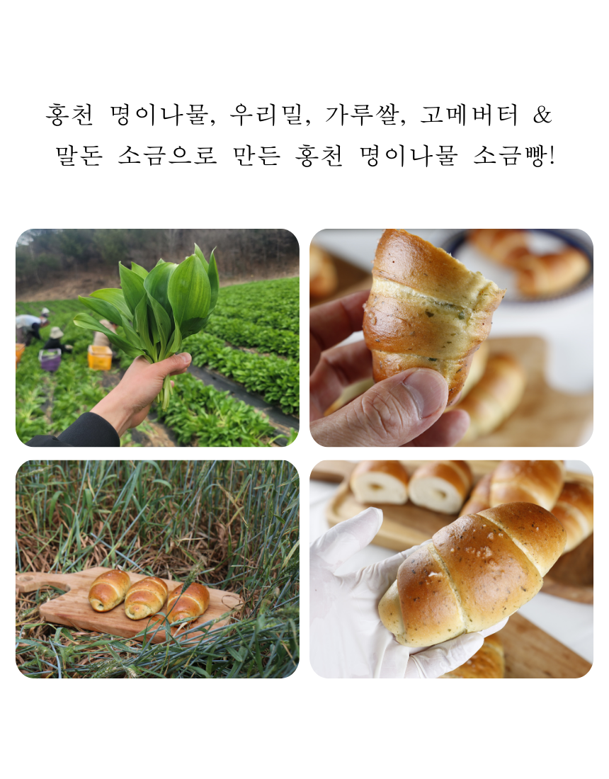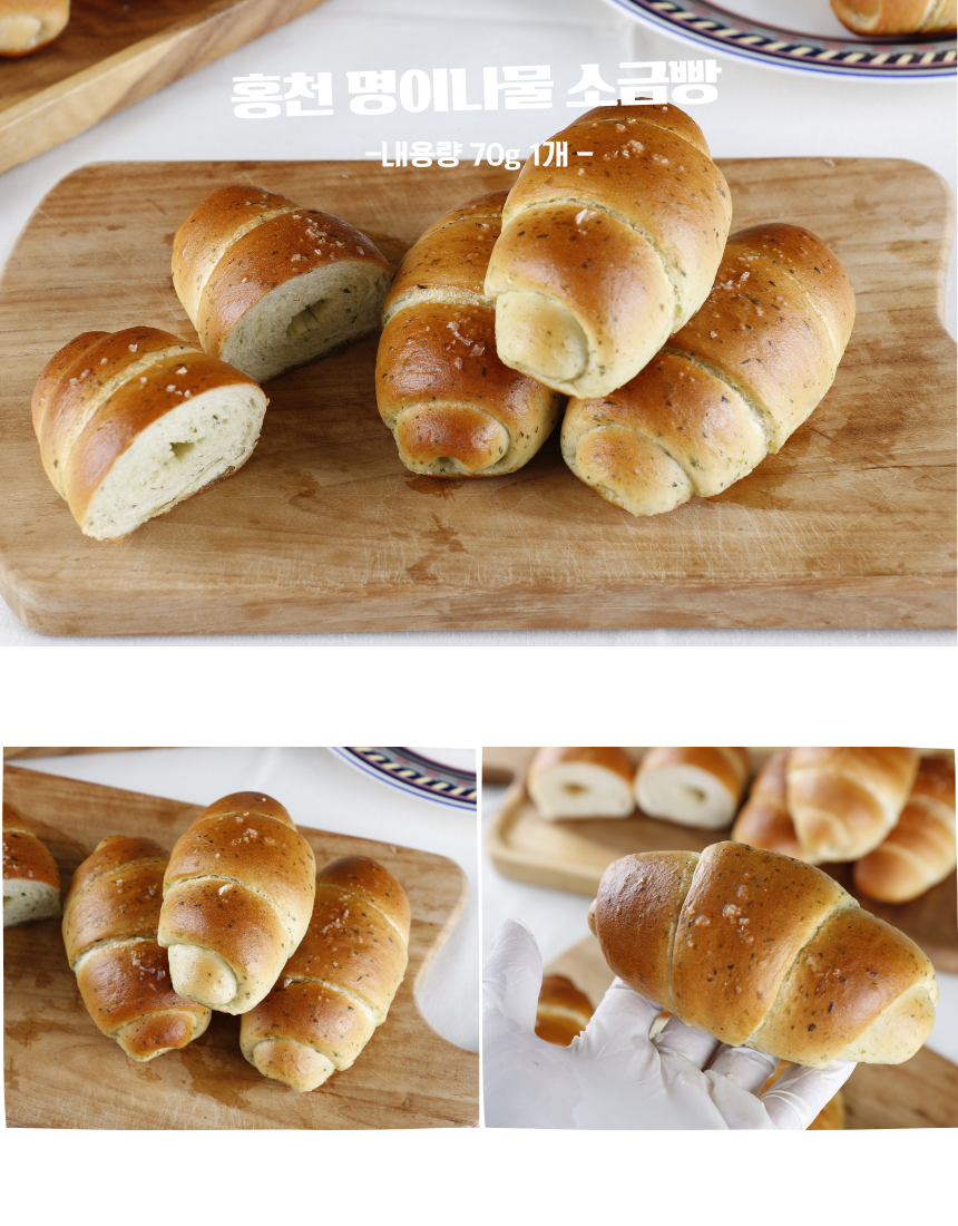 • 홍천 명이나물 소금빵 70g 고메버터 우리밀 쌀 시오빵 간식 택배