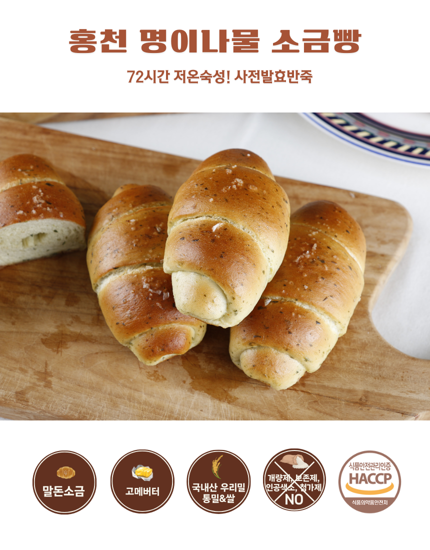 홍천 명이나물 소금빵 70g 고메버터 우리밀 쌀 시오빵 간식 택배