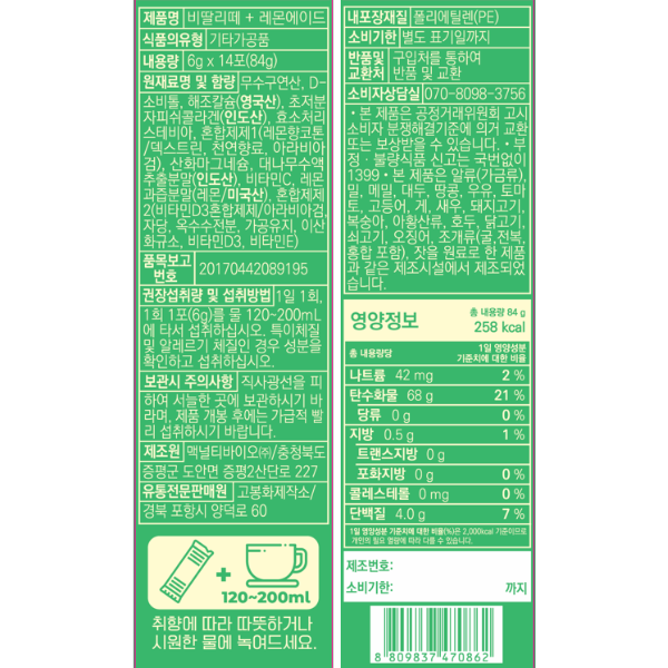 • [보자기 에디션 M] 물에타먹는 제로슈가 비딸리떼 레몬에이드 콜라겐 비타민 칼슘 마그네슘 함유