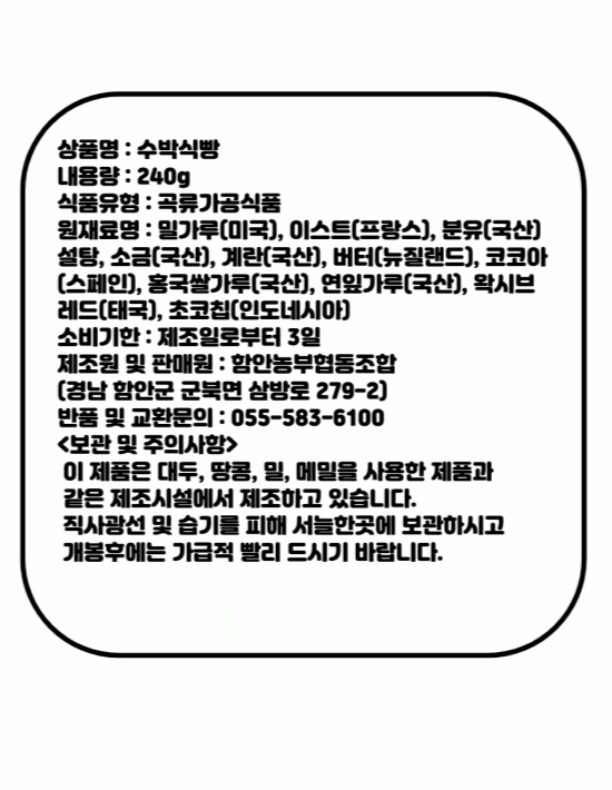 별별농부 수박식빵240g 탕종 무방부제 식사대용 간식 추천
