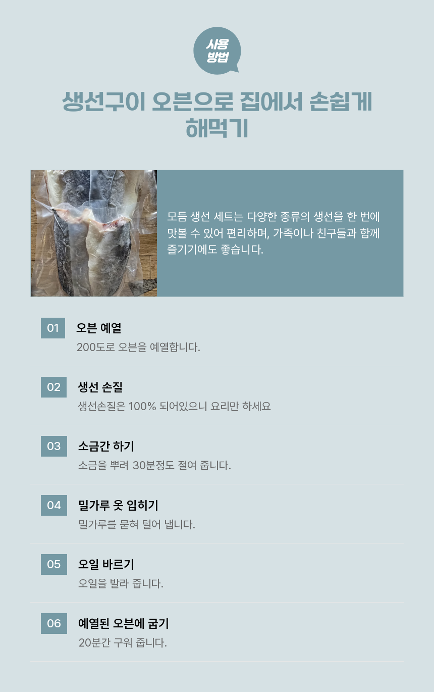 생선을 완전손질하여 바로 요리해서 드실수있으며 진공포장으로 오래 보관이 가능 합니다