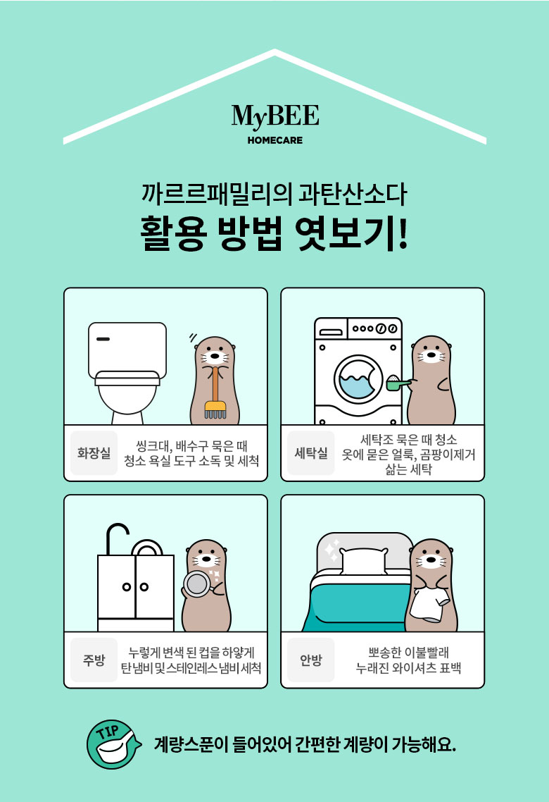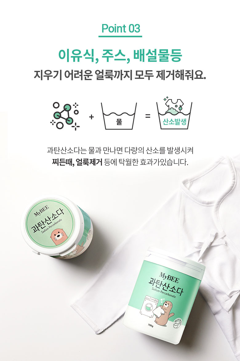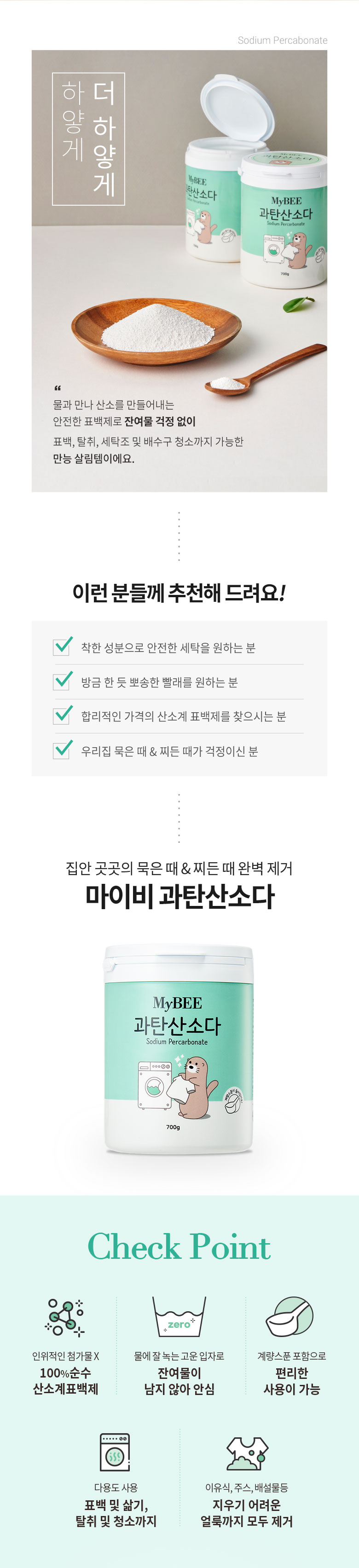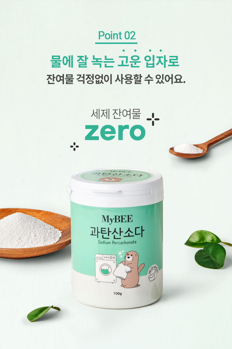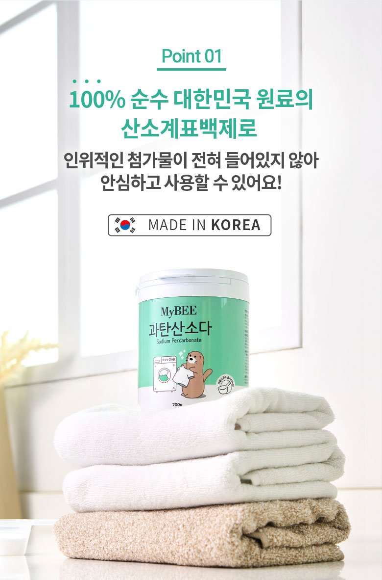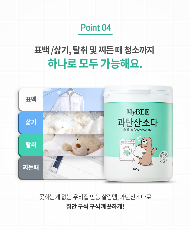 잔여물이 남지않는 100% 산소계 표백제로 다용도 활용 가능 (표백,삶기,탈취, 세탁조청소)