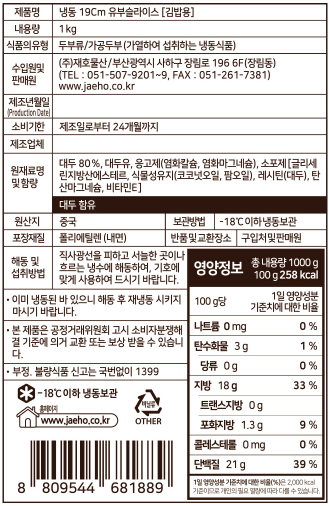 [재호식품] 유부슬라이스 19cm (김밥용) 1kg