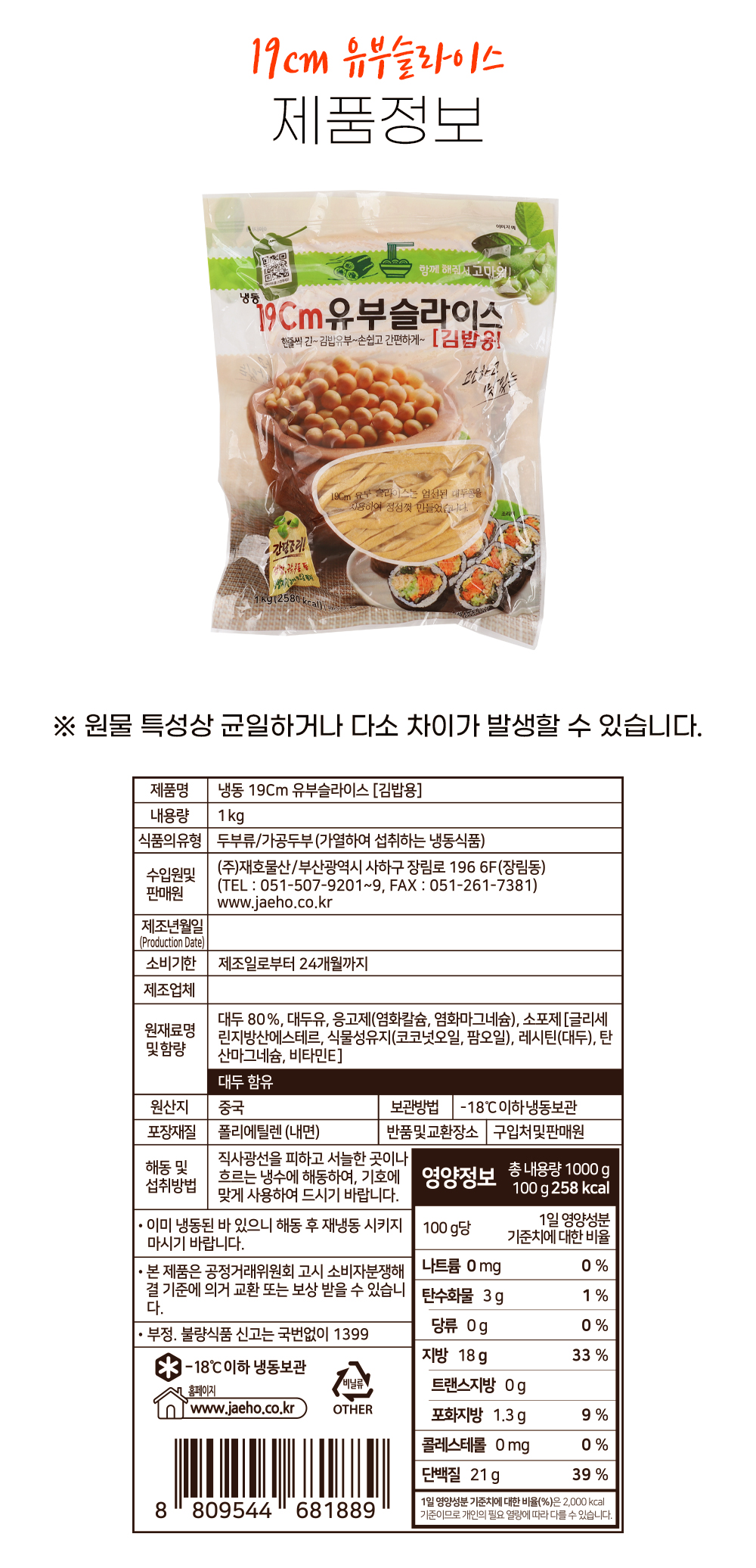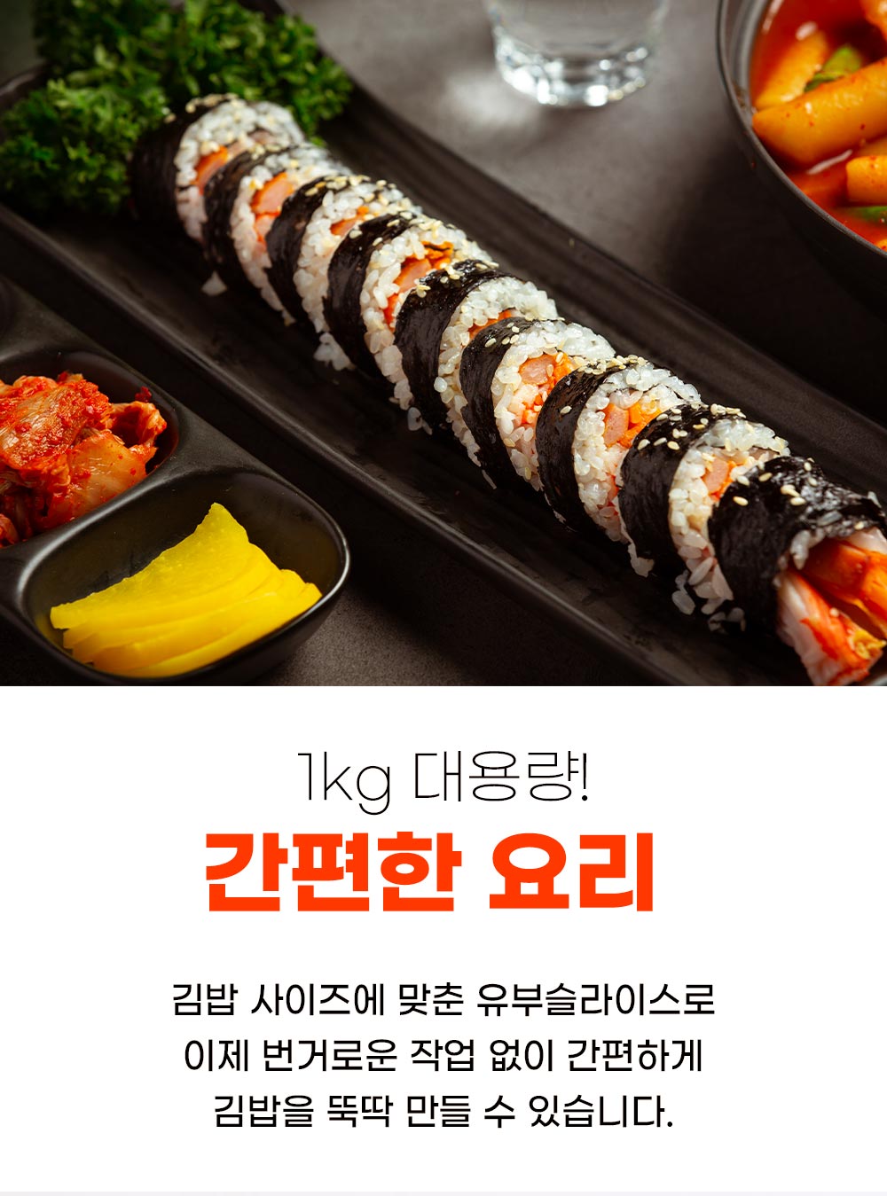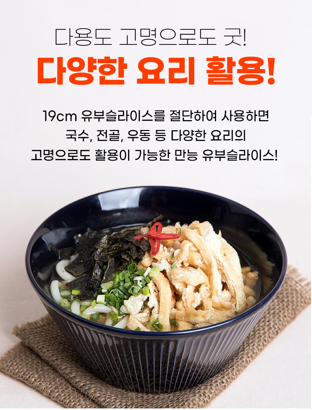 담백한 맛과 쫄깃한 식감을 더하고 김밥의 길이에 맞게 나온 속재료로 알찬 19cm 유부슬라이스 입니다~!